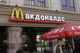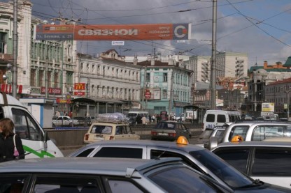 Nun standen wir also an diesem verlassenen Ort und waren voll und ganz desillusioniert. Außerdem war unser Bus auch schon wieder weg und wir machten uns auf den Weg zur nächsten Bushaltestelle um mit den öffentlichen Verkehrsmitteln zurück zum Hotel zu kommen. Während Micha, Jan und Akki das alles jetzt doch wieder ganz locker sahen, wollte ich mich von meiner Grummeligkeit gar nicht wieder erholen. Aber ändern konnte ich ja eh nix. Ich musste mich also damit abfinden, daß sich mein Traum von einem Gig vor so unfassbar vielen Menschen nun doch nicht verwirklichen würde. Nach ein paar Minuten Fußmarsch vom Flughafen weg standen wir nun an der Haltestelle und warteten. Micha, Jan und Akki waren noch immer damit beschäftigt, mich wieder auf Kurs zu bringen. Und mit der Zeit gelang ihnen das auch. Schließlich waren wir in Russland. Und wir würden morgen auf der Bühne definitv alles geben. Denn allzu oft werden wir hier wohl nicht wieder zu einem Gastspiel herkommen dürfen. Unser Bus kam und wir stiegen ein. Es war dolle eng hier drinnen und wir bekamen leider keine Sitzplätze ab. Wieder tobte der Fahrer wie ein Irrer über die Straßen und wir waren offensichtlich wieder die Einzigen, die das als leicht bedrohlich empfanden. Nach ein paar Minuten aufkommender Panik waren wir wieder am Hotel. Nun war aber erstmal Shopping angesagt. Nachdem wir Geld gewechselt hatten, gingen wir mit Peter wieder in die Fußgängerzone und klapperten die Geschäfte nach einigermaßen netten Souvenirs für uns und unsere Freundinnen ab. So leicht war das aber gar nicht. Nachdem wir anfangs noch das Ziel hatten, ein paar coole T-Shirts mit irgendeiner russichen Aufschrift zu finden, steckten wir unsere Ziele nach unzähligen Fehlanzeigen immer tiefer. In einer Stadt, in der es so gut wie gar keinen Tourismus gibt, ist es nunmal verdammt schwer, ein passendes Stück zu finden. Es kann ja mal einer nach Peine fahren und versuchen, dort ein potentielles Souvenir für einen Russen zu finden. Pustekuchen. In der Fußgängerzone war also wirklich nix zu finden. Peter bot uns an, zu einem großen Kaufhaus in einem andern Viertel der Stadt zu gehen. Dort, sagte er, gäbe es bestimmt was. Jan, Akki und ich gingen also mit ihm los. Micha und Olli zogen eine Siesta im Hotel vor. In diesem Kaufhaus liefen wir wieder ewig lange umher und fanden wieder überhaupt nix Passendes. Tolle Wurst. Also marschierten wir zurück zum Hotel. Den einsetzenden Regen möchte ich hier einfach mal unerwähnt lassen. Am Ende unserer Tour durch die Stadt starteten wir einen allerletzten Versuch in dem Kaufhaus direkt gegenüber des Hotels. Und wurden fündig. Wie sollte es auch anders sein... Jan fand tatsächlich ein Shirt für seine Laura (und eins für sich), ich hingegen begnügte mich mit einer Tasse auf der ein Bild des Kreml zu sehen ist. Immerhin. Ich beschloss, daß meine Sonja sich darüber freuen würde.