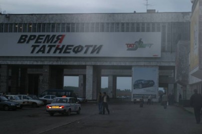 V or dem kleinen Flughäfchen stand ein Reisebus für uns bereit. Dort wartete auch Tilo auf uns. Er ist der erwähnte Bekannte (ehem. Klassenkamerad) von Akki, dem wir diese ganze Reise zu verdanken haben. Tilo entpuppte sich sofort als ein sehr angenehmer und außerordentlich netter Zeitgenosse.Achtung, es folgt ein Satz zum mitdenken: Er hieß aber nicht nur Tilo, sondern auch uns willkommen und wir begannen, uns sehr nett mit ihm zu unterhalten. Dabei wurden natürlich reichlich Zigaretten eingeatmet. Die Tatsache, daß man in Flugzeugen nicht mehr rauchen darf, macht echt keinen Spaß. Am Bus stellte sich auch unser Dolmetscher vor. Er hieß Peter, war 23 Jahre alt und studierte Deutsch an der Kasaner Uni. Er sollte uns also durch Kasan manövrieren. Mein lieber Schwan. Wir hatten also tatsächlich einen eigenen Dolmetscher. Nur für uns. Sehr cool. Die Fußballer hatten sogar zwei davon. Waren ja auch knapp 30 Leute. Da wollten wir also nicht neidisch sein und auch auf einen Zweiten bestehen. Nach ein paar Zigaretten war das Gepäck schließlich im Bus verstaut, wir stiegen allesamt ein und freuten uns auf das Hotel. Bevor wir jedoch losfuhren stieg vorne plötzlich ein Mann in den Bus, schnappte sich das Mikro, stellte sich mal so nebenbei als deutscher Botschafter vor und wünschte uns einen angenehmen Aufenthalt. Wir staunten natürlich nicht schlecht. Da steht also sogar der deutsche Botschafter in aller Frühe auf, um morgens um 5.30 Uhr ein paar Musiker und ein paar Fußballer zu begrüßen. Jawoll. Das hat Stil! Nun fuhren wir los. Wir ließen das Flughafengelände hinter uns und peilten Kasan an. Etwa 30 Minuten Fahrt lagen vor uns, da der Kasaner Flughafen ziemlich genau mitten auf einem Acker liegt. Es ging also durch die ländlich anmutenden Außenbezirke Kasans direkt in Richtung Innenstadt.
