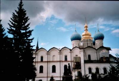 Freitag, 10.09.04 / 2. Tag - Die Stadtführung Nach ein paar Stunden Schlaf mussten wir uns schon wieder aus den Betten erheben. Schließlich war für 13 Uhr Mittagessen angesagt und anschließend sollte für uns und die Fußballer eine Führung durch Kasan stattfinden. Ogottogott... Ozzy Osbourne sagte mal "I fucking hate christmas". Ich sage "I fucking hate Stadtführungen". Blöde Scheisse. Wer zur Hölle interessiert sich ernsthaft für Stadtführungen? Alte Menschen vielleicht. Das mag durchaus sein. Bei denen liegt das aber auch daran, daß die sonst nix mehr zu lachen haben. Denen erzählt ja auch keiner mehr was. Da sind sie froh, wenn sie auf einer Stadtführung mal ein bißchen bequasselt werden. Außerdem können alte Leute besonders gut Interesse und Amusement heucheln. Stadtführungen sind doch wirklich überall der selbe Mist. Ob man nun in Salzburg, in Wolfenbüttel, in Mailand oder eben in Kasan Gast ist. Stadtführungen sind immer unglaublich ermüdend, langweilig und wahnsinnig nervtötend. Nach 10 Minuten hört kein Arsch mehr zu, nach 20 Minuten sind alle erschöpft und wollen sich lieber irgendwo hinsetzen, und nach weiteren drei Minuten ist es wie im Krieg: man beginnt zu hoffen, das es bald vorbei ist. Unsere Stadtführung machte da selbstverständlich keine Ausnahme.